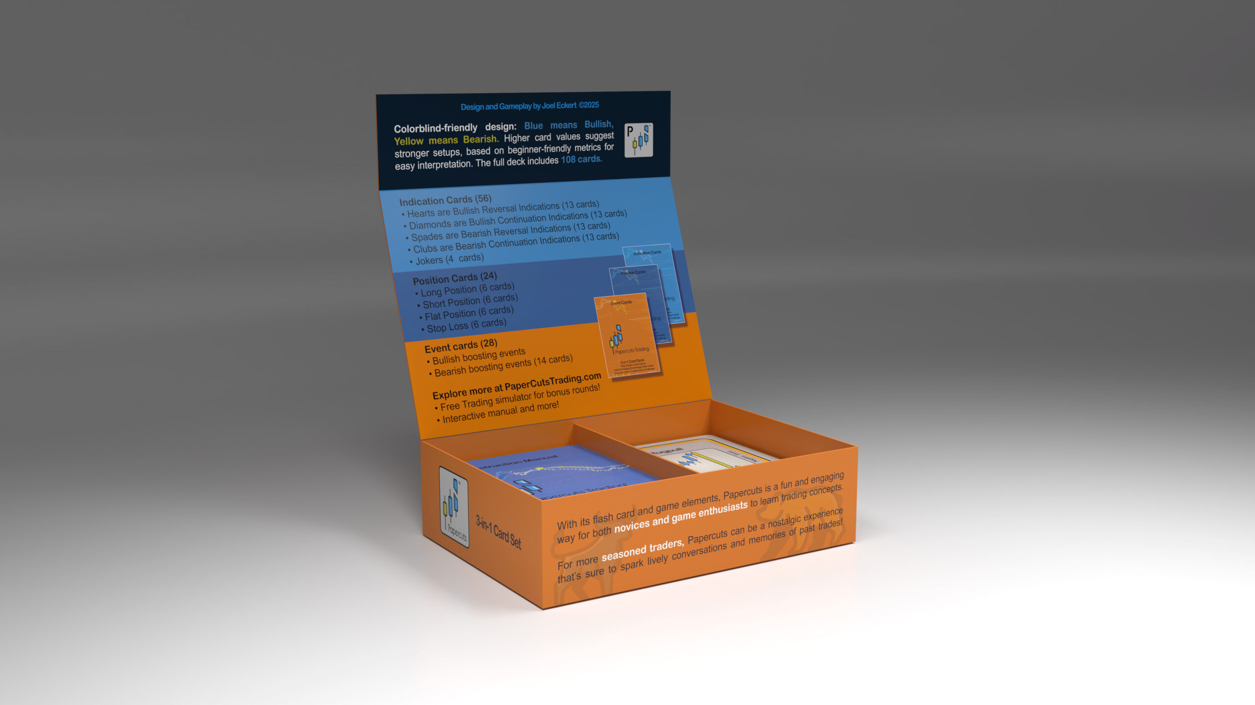 The Papercuts 3-in-1 Card Set is a first-of-its-kind trading-themed deck designed for traders, learners, and card game enthusiasts alike.